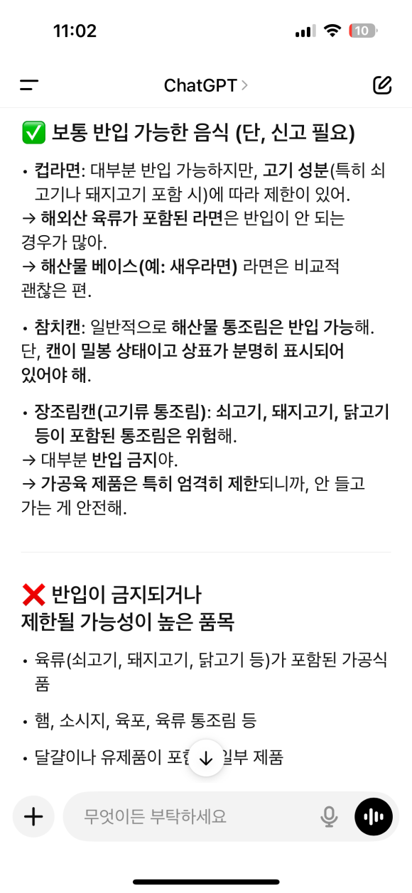 혹시나 해서 챗gpt에도 물어봤다. 결론은 안 가져가는 게 좋다는 내용...